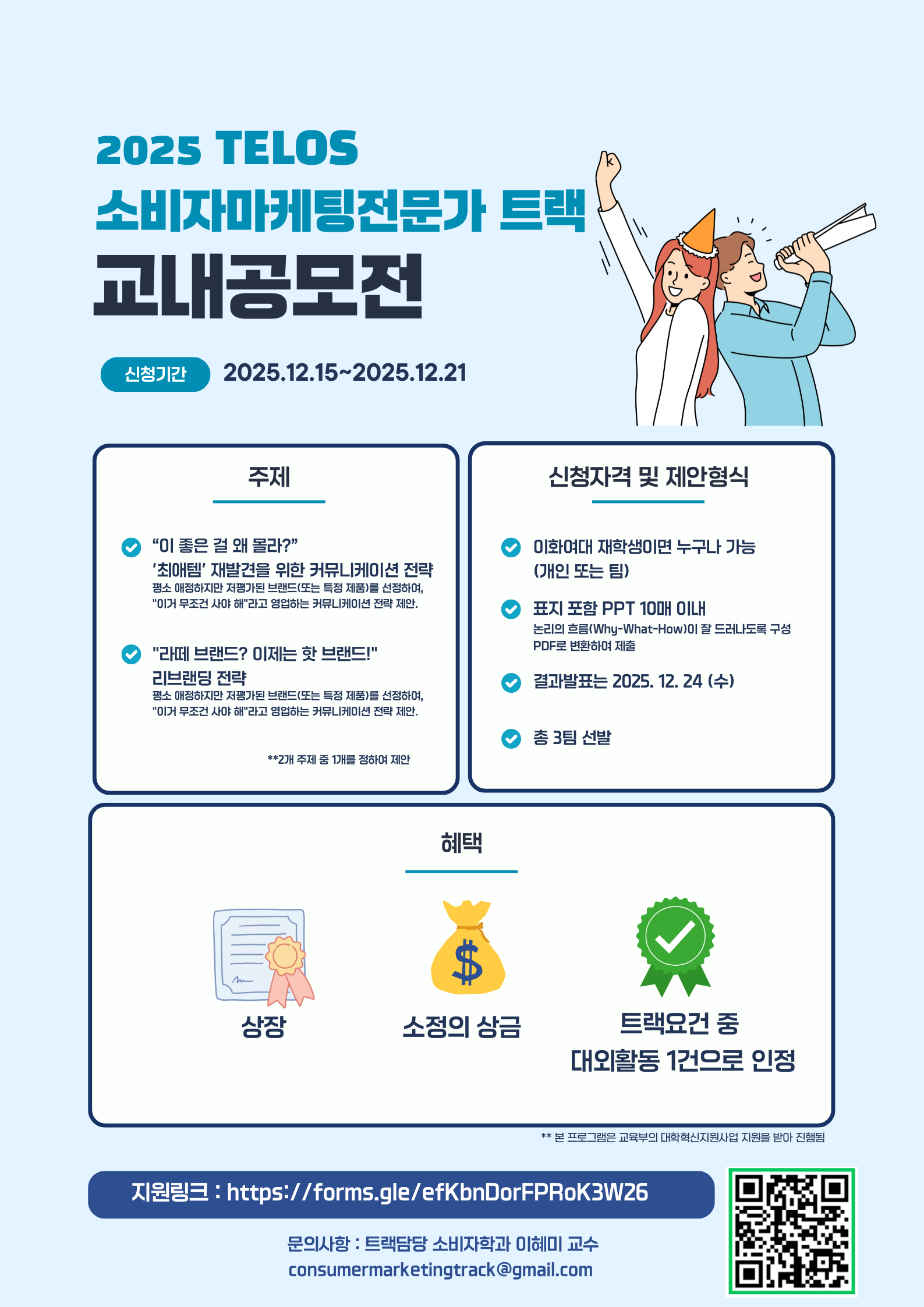 TELOS 소비자마케팅전문가 트랙 교내공모전안내 드립니다.